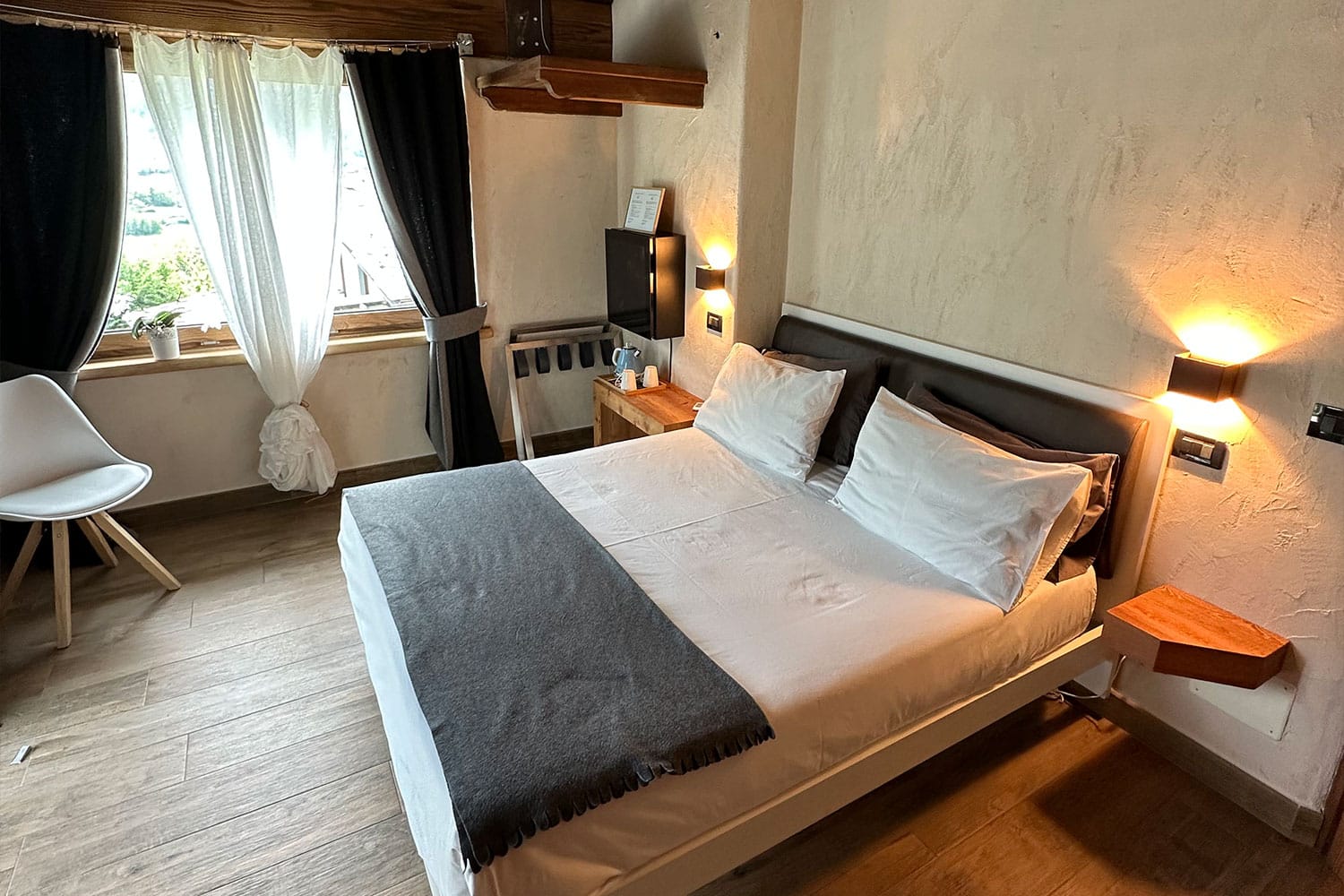 Chaque chambre, intime et accueillante, a été conçue pour accueillir les clients qui souhaitent passer un séjour romantique immergés dans la nature et la tranquillité, été comme hiver.